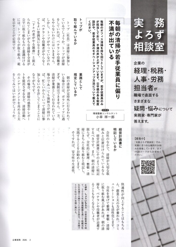 経理・総務・人事向け専門情報月刊誌『企業実務』2026年2月号「実務よろず相談室」に、当社代表の小早の寄稿記事が掲載されました。