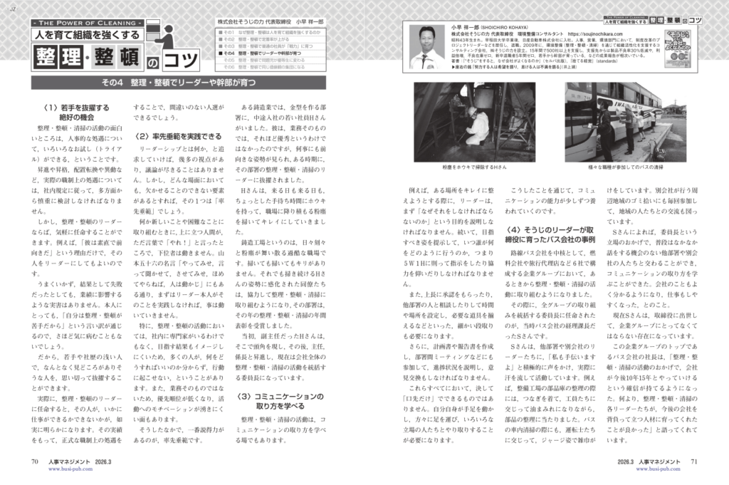 経営者・人事・総務担当者向けの専門誌『月刊人事マネジメント』2025年12月号より、当社代表の小早の寄稿記事『人を育て組織を強くする「整理・整頓」のコツ』が連載されています(計6回)。